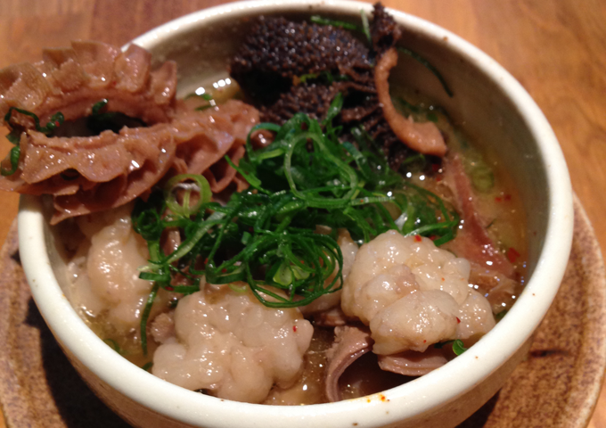 白みそベースのホルモンの土手焼きです。ホルモンのコクがより一層引き立つー品。