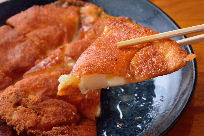 たっぷりチーズとお餅とポテトのコラボ。外はカリカリ、中はとり〜り絶妙な味わいが大人気!!