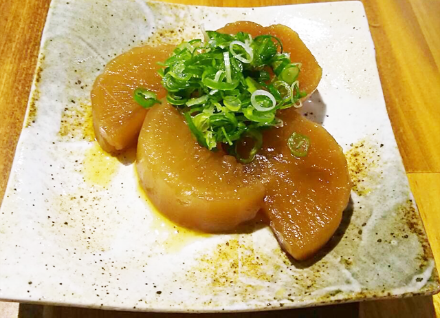 大根をお酒・みりん等でじっくり味が染み込むまで煮込んだ一品。(炙りチーズ+120円)